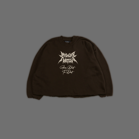 RAPHAEL'S RAGE 'GRUNGE' OS BOX CUT RETRO SWEATSHIRT IN BROWN