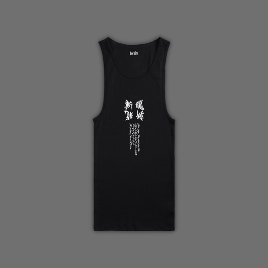 DHARMACHAKRA 'LIMITED' BOX CUT MUSCLE TEE IN BLACK