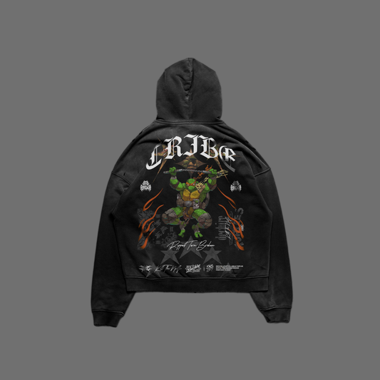 THE LAST RONIN OS BOX CUT RETRO HOODIE IN SHADOW BLACK