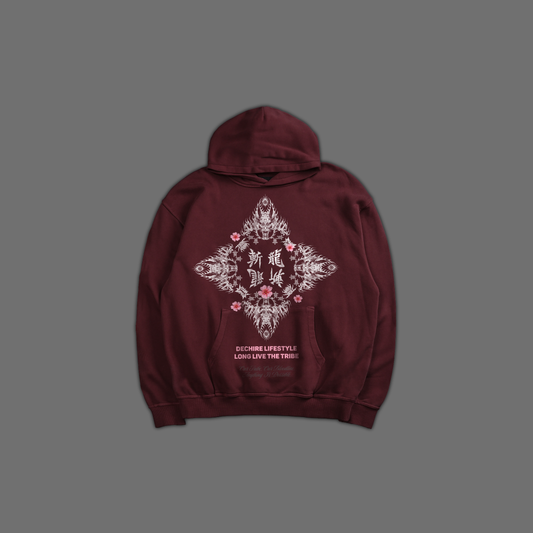 REVENGE ARC 'LIMITED' OVERSIZED FLEECE HOODIE IN BURGANDY
