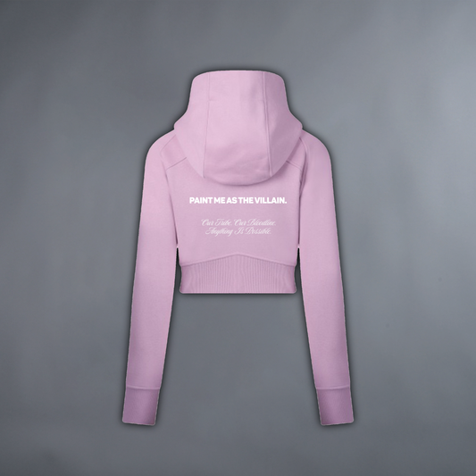 PAINT ME AS THE VILLAIN 'LIMITED' CROP ZIP HOODIE IN RETRO PINK