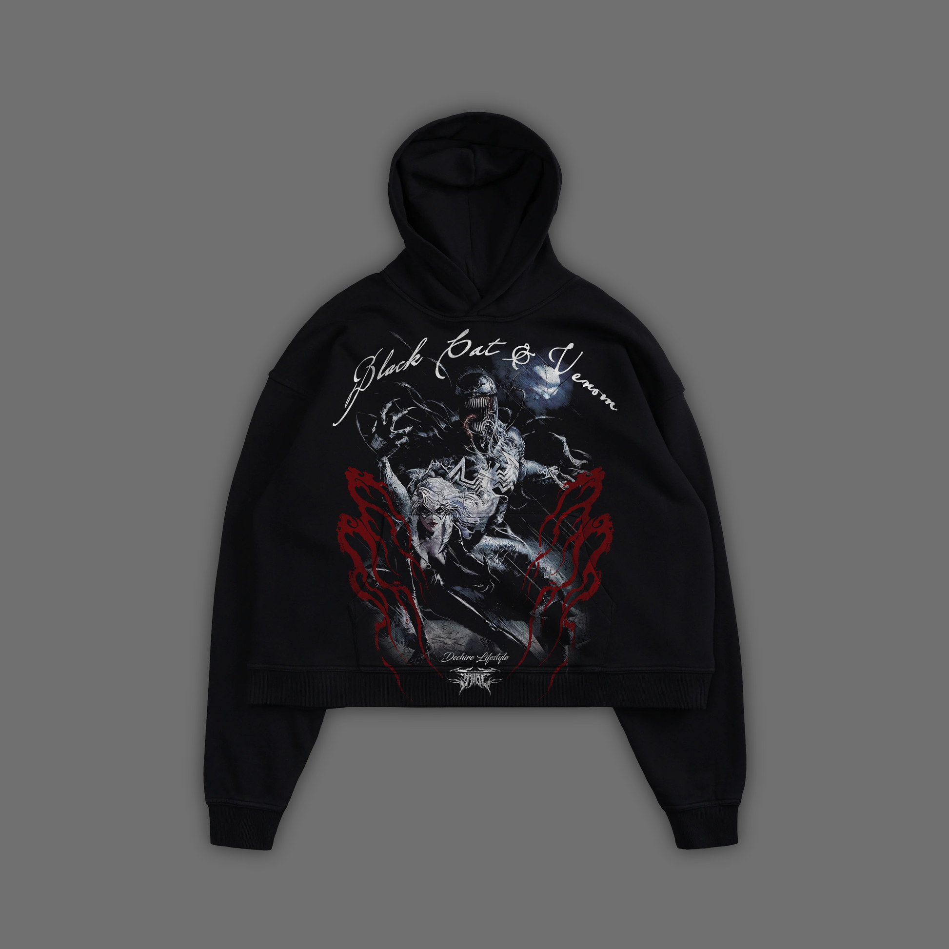 BLACK CAT & VENOM 'EXCLUSIVE' BOX CUT HOODIE IN SHADOW